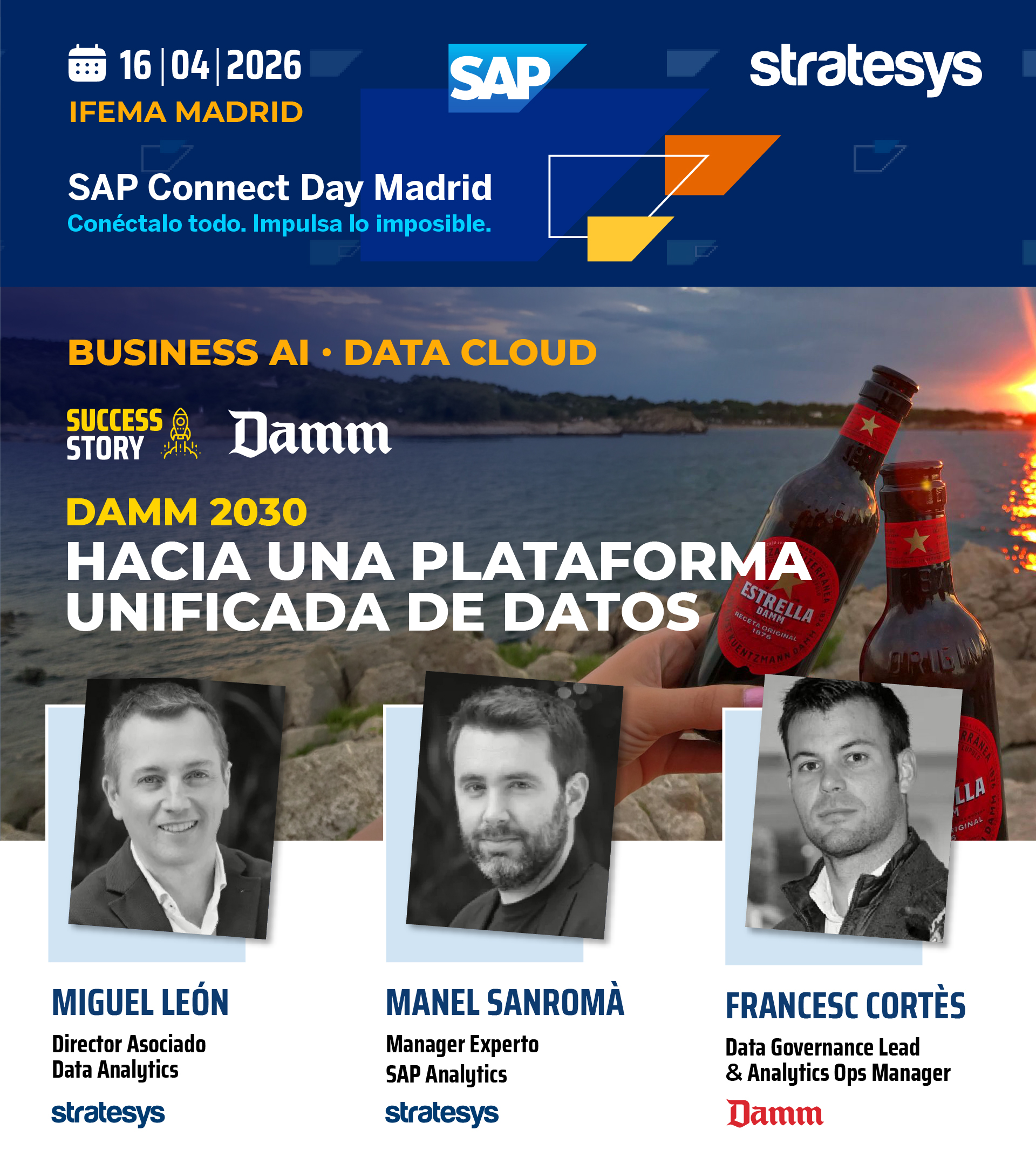En el contexto del SAP Connect Day  estaremos a las 12:00 h, en el espacio SAP Connect Day for Business AI · Data Cloud, donde tendrá lugar la sesión “Caso de éxito DAMM: DAMM 2030. Hacia una plataforma unificada de datos”.