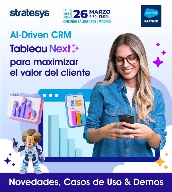 A lo largo de la mañana, nos sumergiremos en una experiencia práctica basada en casos de uso y problemáticas reales de clientes de Stratesys. A través de demos en vivo con el nuevo Tableau Next, verás cómo resolver desafíos de negocio —desde la optimización del embudo de ventas hasta la retención proactiva de clientes— de una forma visual, intuitiva y potenciada por agentes inteligentes.