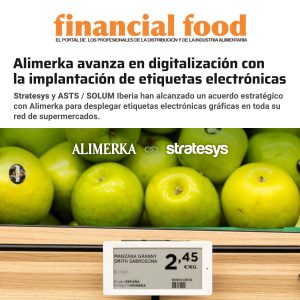 Stratesys, multinacional tecnológica especializada en consultoría digital, junto con ASTS / SOLUM Iberia, han alcanzado un acuerdo estratégico con ALIMERKA para desplegar etiquetas electrónicas gráficas en toda su red de supermercados.